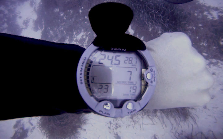 There wasn’t much aquatic life to speak of on this dive but the wreck made up for that. I was darting in and out of doorways and rooms. Exploring all over the place. It was a lot of fun. Soon it was time to go back.Β  Even though I didn’t go beyond my no-stop limit as we left the wreck and started to ascend once my computer was reading 5 minutes, however my computer decided to add a longer stop. This was probably due to the previous deep dive that I had done.