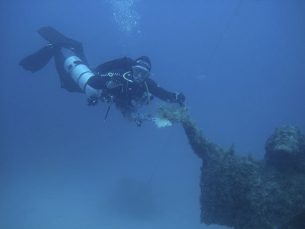 Me with the sidemount, breathing from a third stage at the Jesus statue on the return journey from the Imperial Eagle