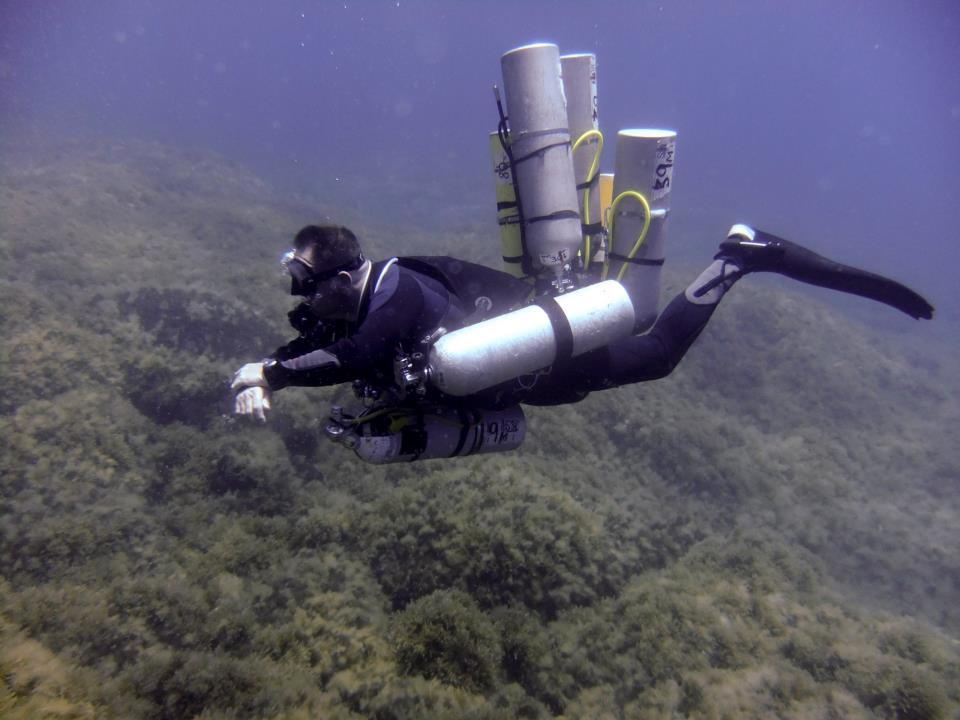 I like the Hollis SMS 50, however one of the problems I encountered with it is that due to the fact that the aluminium tanks that I used it meant that I had to use a lot of weight. The weight wasn’t to help me sink at the beginning of the dive, but it was to help stop me from being two buoyant at the end of the dive when I would have both cylinders almost empty and trying to lift me up. I needed to use 10kg of weight to keep me down. This was unfortunate and where the main problem lies. The wing on the harness only gives 10kg of lift. This meant that I needed to rely on having empty cylinders to be buoyant at the end of the dive – not the best situation to be in if you don’t have empty cylinders. Another problem that I found was the BCD dump valve cord was too long, it would occasionally get caught between the right-hand-stage and the harness, meaning that it could be difficult to dump air.