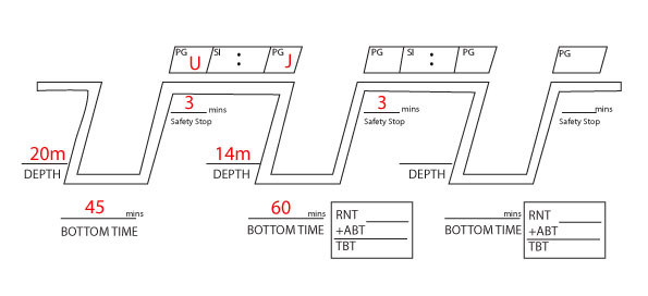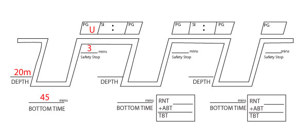 So here is the completed dive profile for the two dives. I have also filled in the final pressure group.