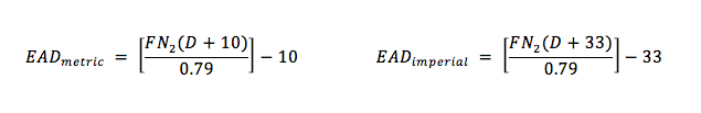 How does one calculate the equivalent air depth for a particular gas mix? First you have to know the gas mix that you are planning to use and the depth that you are going to (the calculation for MOD can be found here). Obviously the mix has to be usable at that depth so you. Once you have the depth and the gas mix you can use the following formula to work out the equivalent air depth.