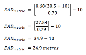 How does the calculation change if you are using Helium in the gas mix? To work out the EAD for Trimix 32/15 for the above depths we would add the percentages of Oxygen and Helium together giving us 47% non-Nitrogen gas in the mix. We then subtract this from 100% and this gives us the percentage of Nitrogen in the mix, 53%. We would then just use the formula above with an FN2 of 0.53. If you follow the calculation through you would find that you have an EAD of 16.8m / 56ft. This is a considerable difference and would greatly reduce the nitrogen narcosis exposure a diver would encounter.