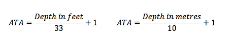 First of all we have to calculate the ATA pressure at 30m. We can do this by using the appropriate formula below.