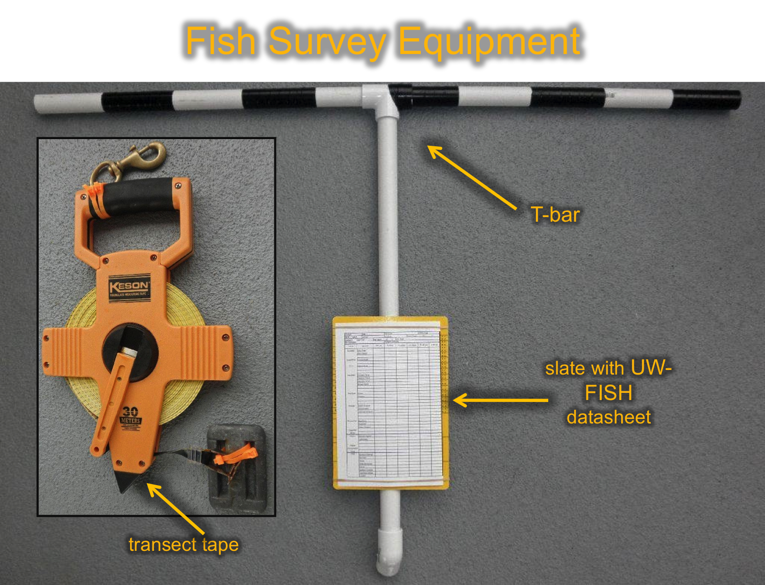 The morning started with a classroom session where we discussed the history and purpose of AGRRA. We also did a small Fish ID test and we discussed different fish recording website called reef.org (more about that in another post). After lunch we then headed to Stuart Cove’s where we did a check dive to make sure that we were all comfortable in the water. Of the nine of us who were diving we were made up of 4 instructors, 1 divemaster, 1 rescue diver, and 3 regular divers – it seemed a bit overkill to check that all of us could dive but it meant that we got to go for a bimble around the James Bond Wrecks. Though we did practice some basic skills such as: mask flood and clear, out-of-air, neutral buoyancy, and hovering. Once we returned to the dock we constructed the tools that we would need to do the survey. More about how to use it later.
