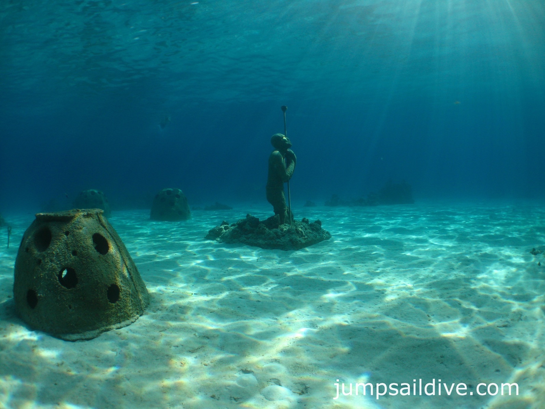 We collectively decided that we wouldn’t dive and returned the tanks to Stuart Cove’s. We then had some fantastic food made and brought by the dive club members. The wind changed and things were looking up. In fact things got so good that we were able to go diving. Luckily I had my tanks with with me so I slung one under my arm and monkey dived around the snorkel park. It was a lot of fun and I finally managed to see the statues with my own eyes and get some pictures of them.
