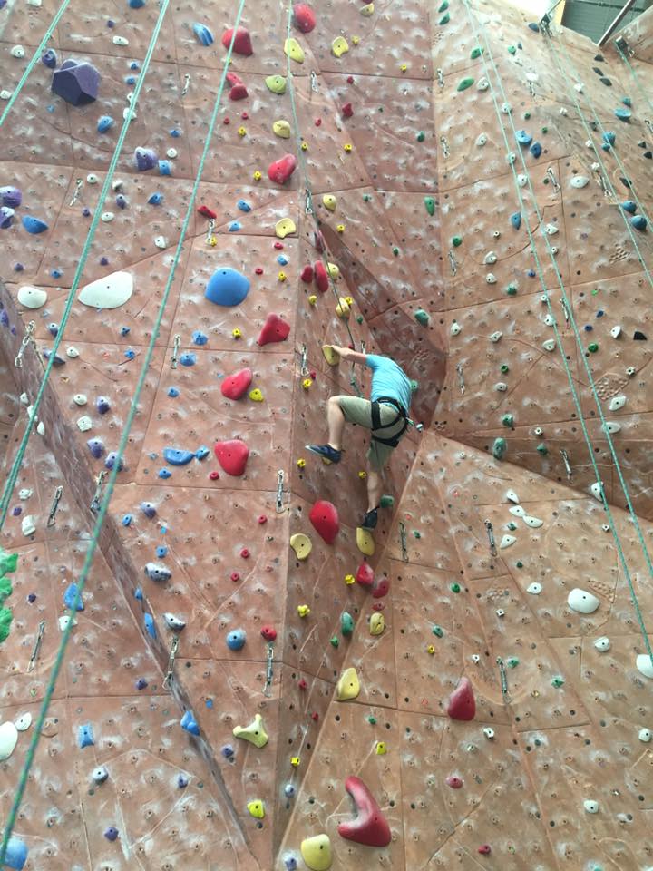 We had a few climbs on the beginner wall before moving downstairs to the more advanced walls.