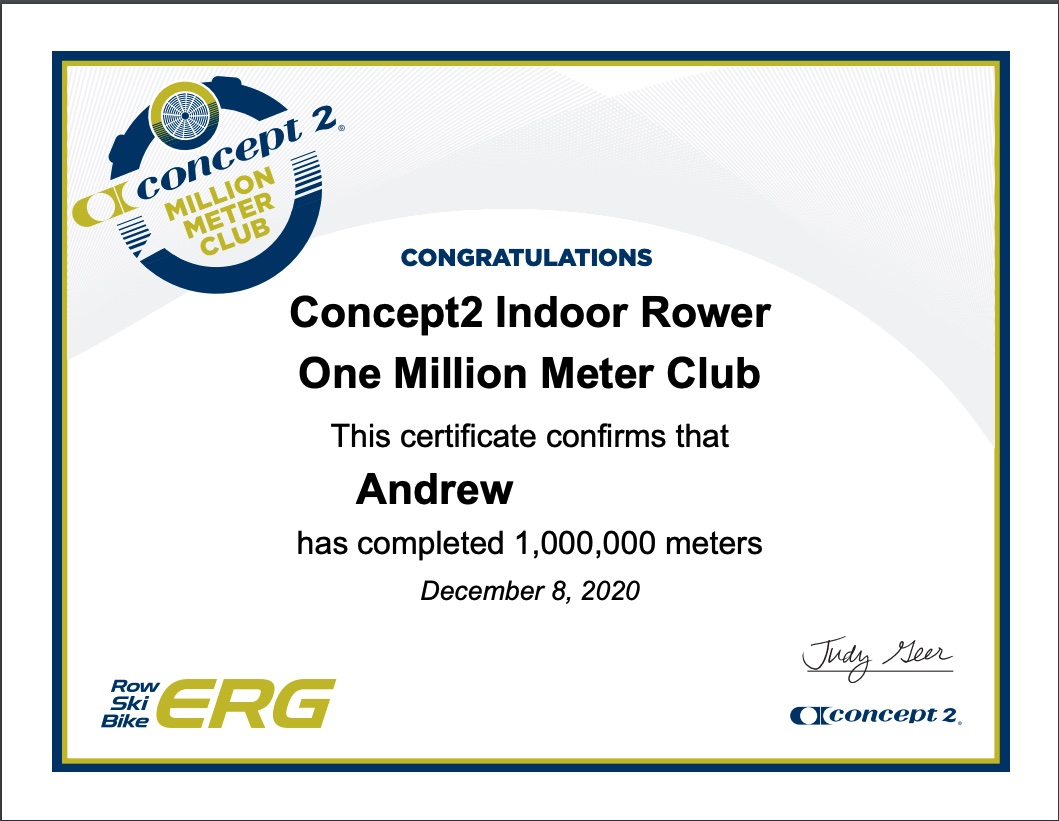 My first 1,000,000m rowed? Well that is blatantly a lie. I rowed for at least 2 years while at university and the amount of time that I had put on the Concept 2’s in the boat house or in the university gym, I think I easily covered that several times over.